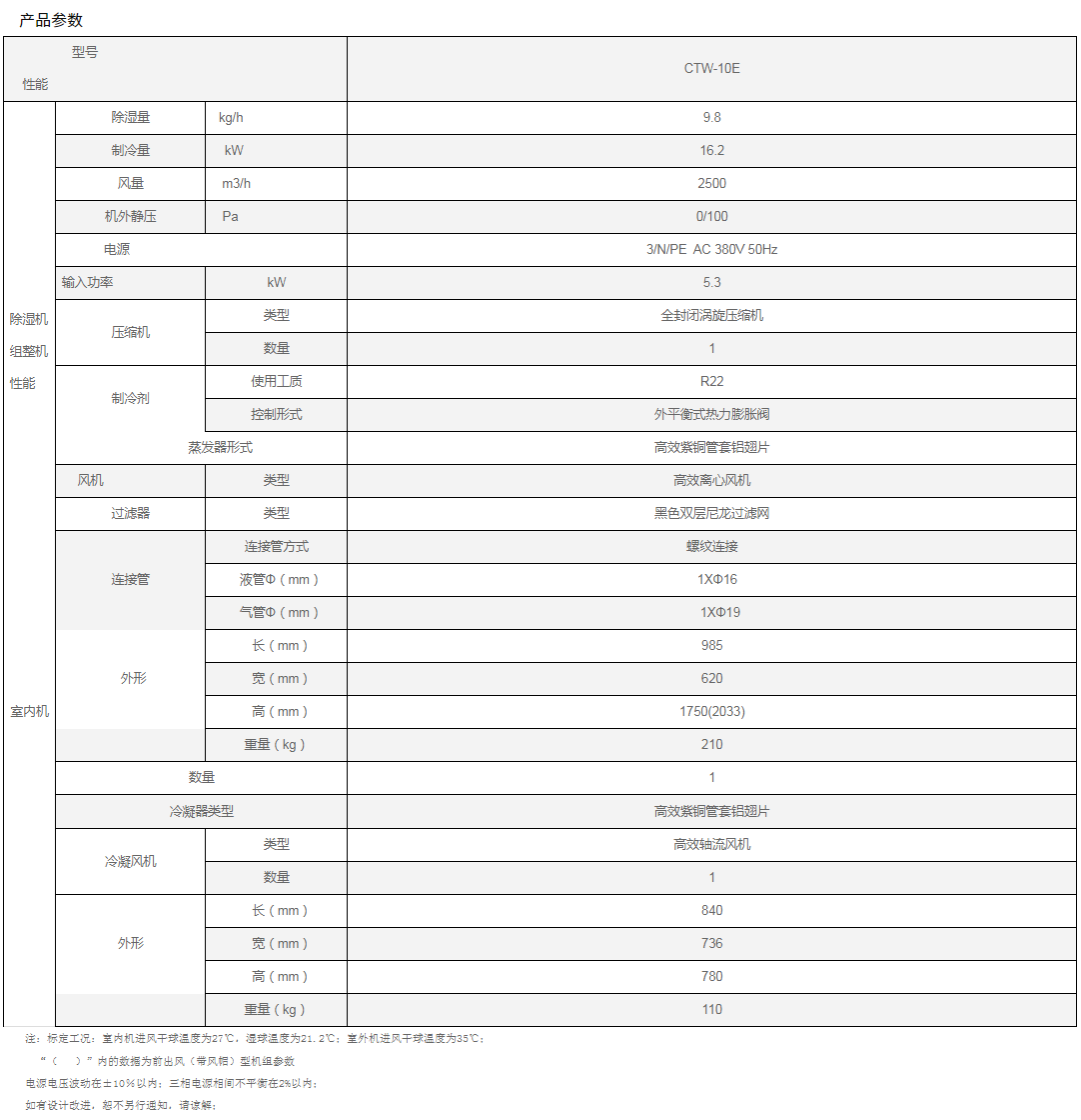 ·強大的除濕和制冷功能·全封閉渦旋式壓縮機·高效紫銅管套鋁翅片·高效離心風機·外平衡式熱力膨脹閥·黑色雙層尼龍過濾網·高效軸油風機
