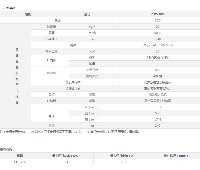 經典系列工業除濕機 CFZ-20S