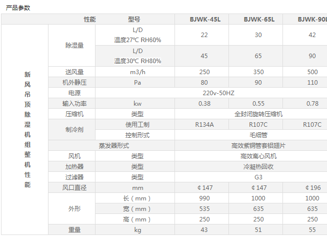 強勁除濕:采用冷凍除濕原理,額定工況下的除濕量為22-42L/D,使室內相對濕度保持在60%以下,既解決了室內高濕環境給人帶來的悶熱感,又解決了室內霉菌污染問題。